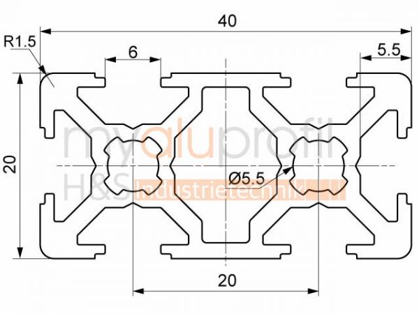 | Aluminiumprofil 20x40 Nut 6 B-Typ Schwarz | Länge: 420 mm | 2x |